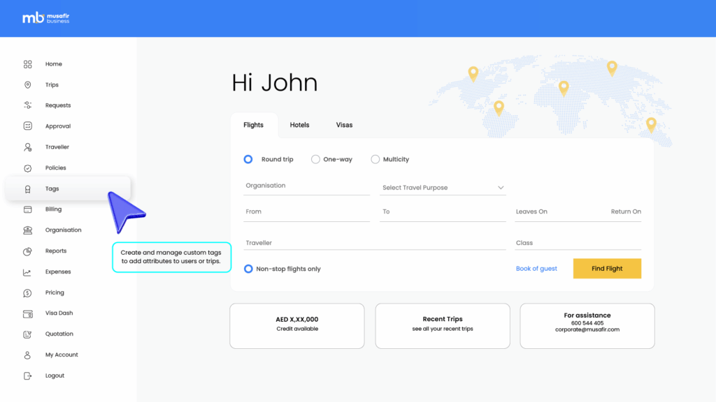 Created a parent company account on mbiz under which their multiple other business units became tags values under the parent account. This made the process of obtaining any form of travel reports easier for the client to access at any given point.
